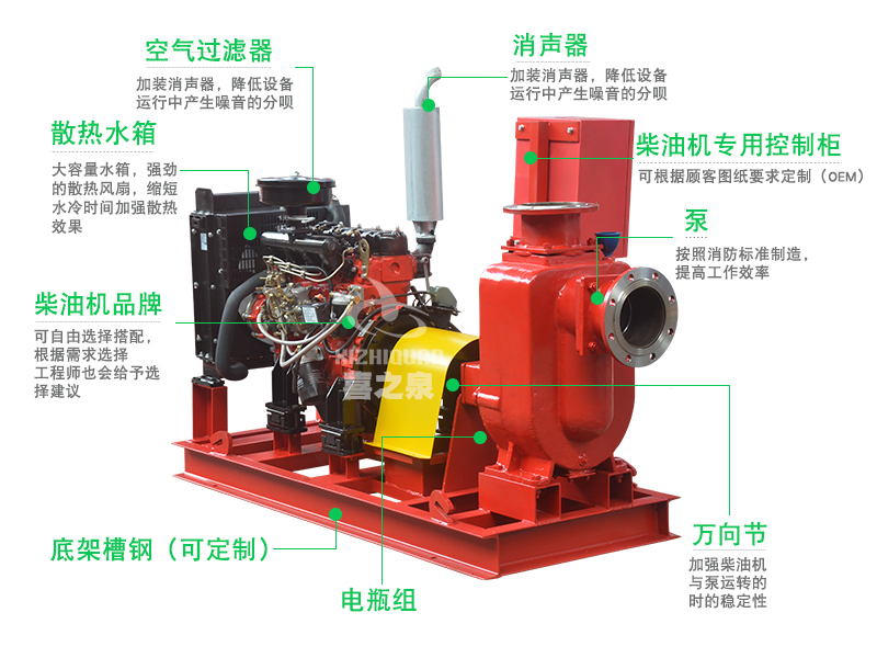 柴油機消防泵組是上海喜之泉泵閥有限公司嚴格按照標準GB6245消防泵性能要求和試驗方法等標準研制開發的一種新型消防設備
