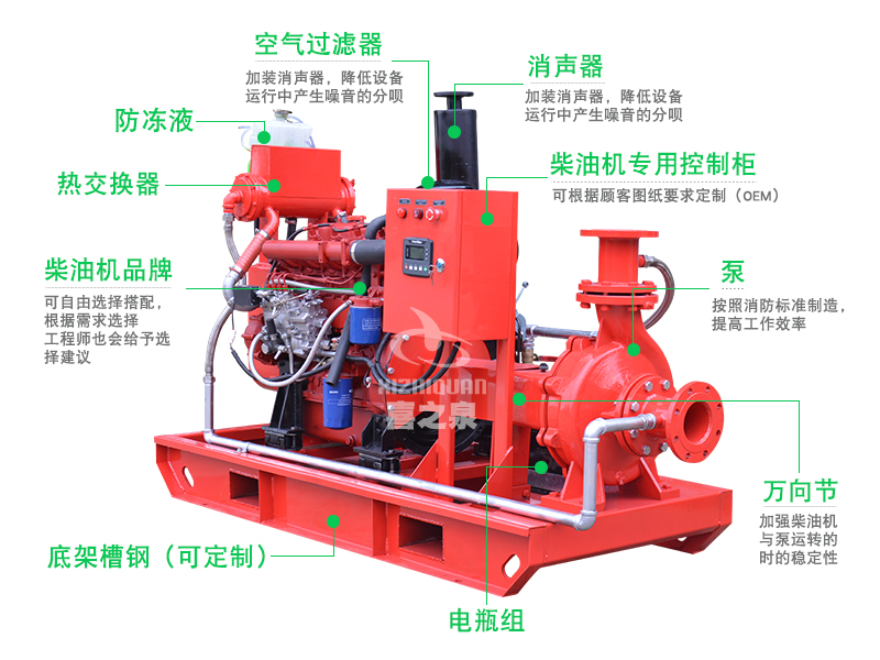 XBC-IS柴油機消防泵組是上海喜之泉泵閥有限公司嚴格按照標準GB6245消防泵性能要求和試驗方法等標準研制開發的一種新型消防設備,該系列設備按所配用的消防泵(單級單吸式、單級雙吸式、節段多級式)可分為XBC-IS、XBC-S、XBC-D等三個子系列,設備壓力、流量范圍廣,其應用幾乎能滿足消防所需的各種場合。