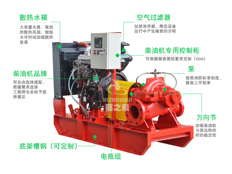 XBC-S柴油機消防泵組適用于倉庫、碼頭、機場、石油、化工、電廠、液化氣、紡織、船舶、油輪等各種場合的消防供水和應急供水。