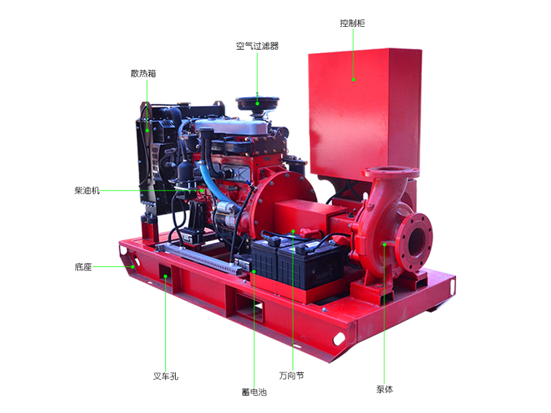 柴油機消防泵組適用于倉庫、碼頭、機場、石油、化工、電廠、液化氣、紡織、船舶、油輪等各種場合的消防供水和應急供水